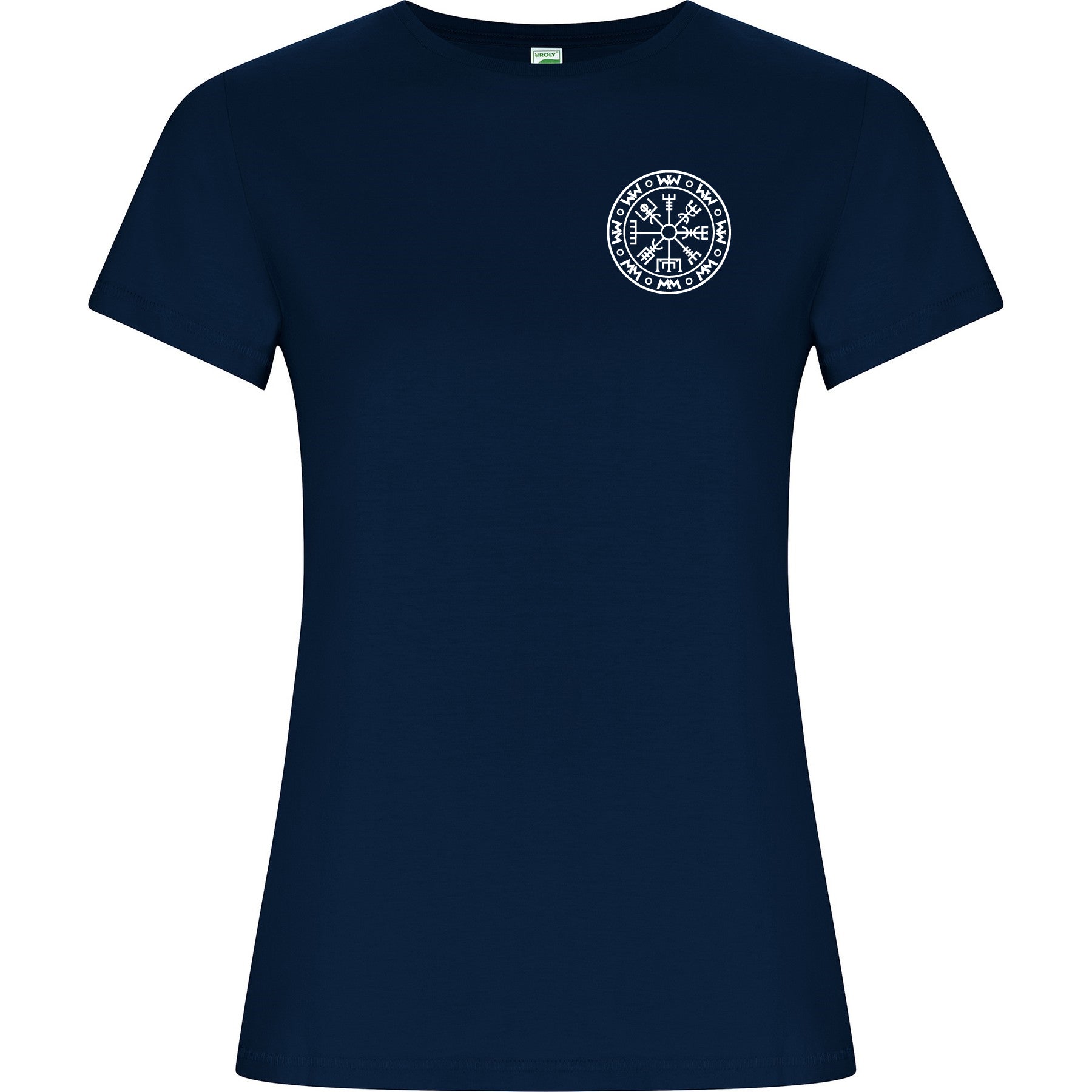 Camiseta Orgánica entallada mujer WIKING Azul Marino, 100% Algodón Orgánico Peinado, punto liso, escota redondo con Rib 1×1, costuras decorativas en bajo y mangas,  costuras laterales, con Certificados de responsabilidad ECO.
