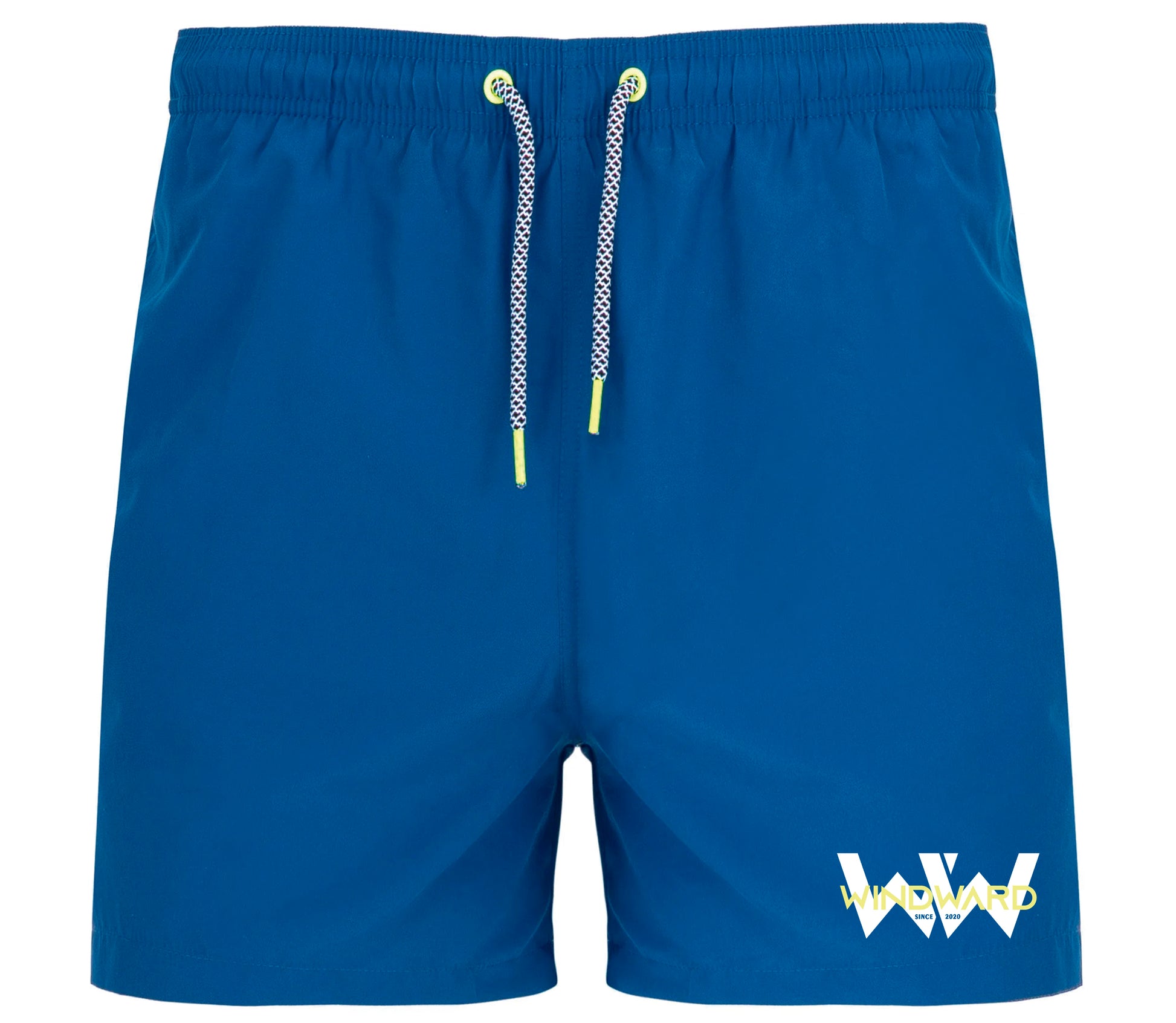 Bañador WW25NEW Azul, dos bolsillos laterales, cinturilla elástica con cordones decorativos ajustables y ojales metálicos a contraste, laterales con vivo a contraste, bolsillo trasero con ojal de desagüe.