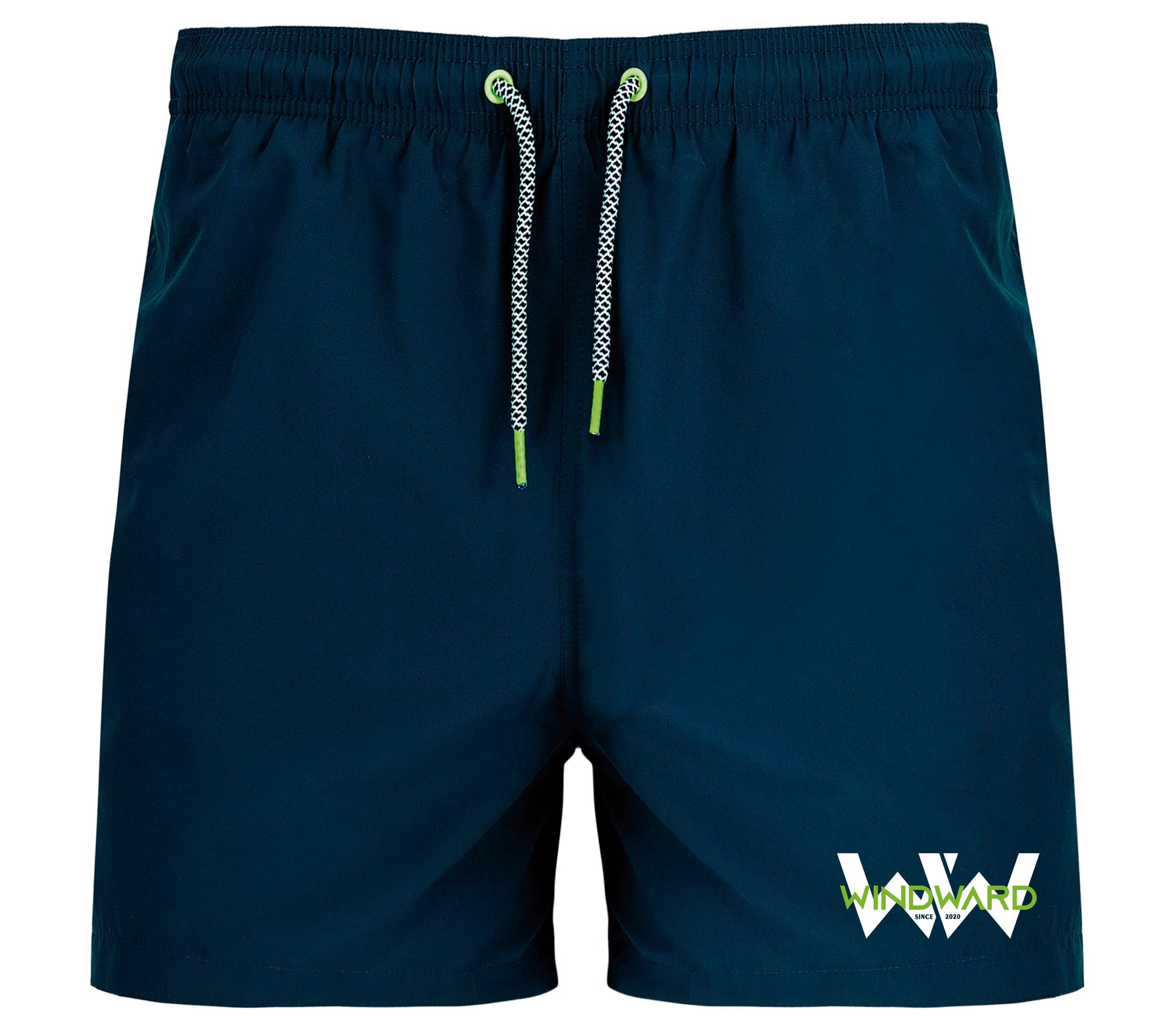 Bañador WW25NEW Marino, dos bolsillos laterales, cinturilla elástica con cordones decorativos ajustables y ojales metálicos a contraste, laterales con vivo a contraste, bolsillo trasero con ojal de desagüe.