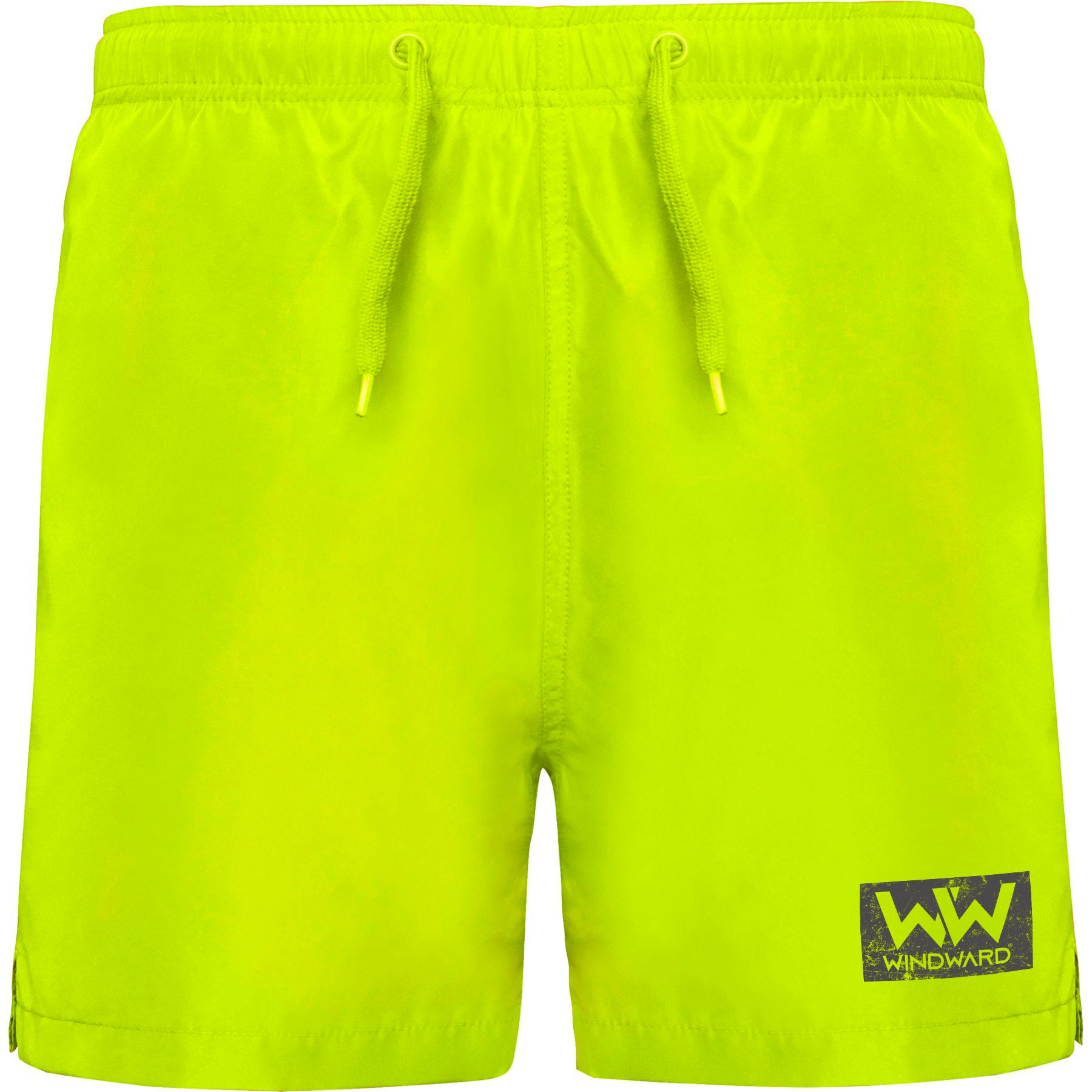 Bañador niño SQUARE Amarillo Flúor. 2 bolsillos laterales. Cordón ajustable al tono, bolsillo trasero con tapeta y ojal de desagüe. Apertura lateral. Pespunte de carga doble hilo al tono. Slip interior. Forro bolsillo calado.