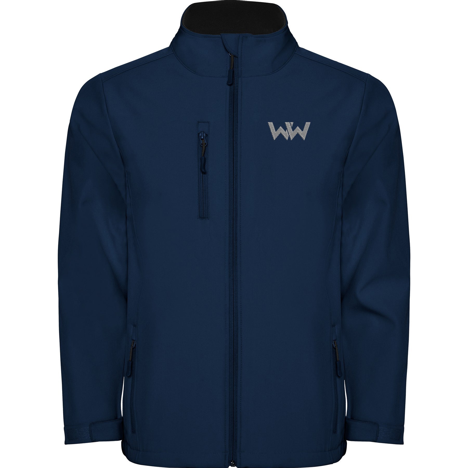 Softshell MOUNTAIN niños con LOGO BORDADO Marino, compuesto de 2 capas, cremallera invertida a tono, con protector de barbilla y tirador, forro interior en tejido polar, bolsillo exterior en pecho derecho con cremallera a tono y tirador, dos bolsillos exteriores con cremallera a tono y tirador, ajustadores en puño con velcro y bajo con cordón elástico y topes.