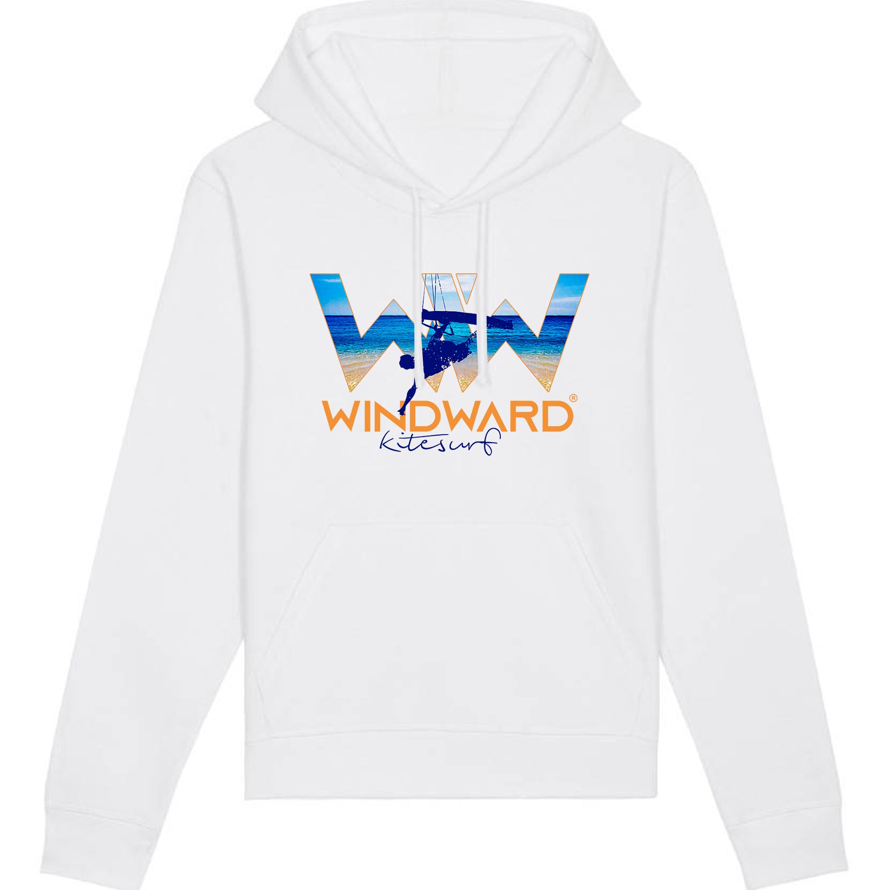 Sudadera con capucha KITESURF Blanca Unisex, 85% Algodón Orgánico Hilado y Peinado con Certificados de responsabilidad ECO.